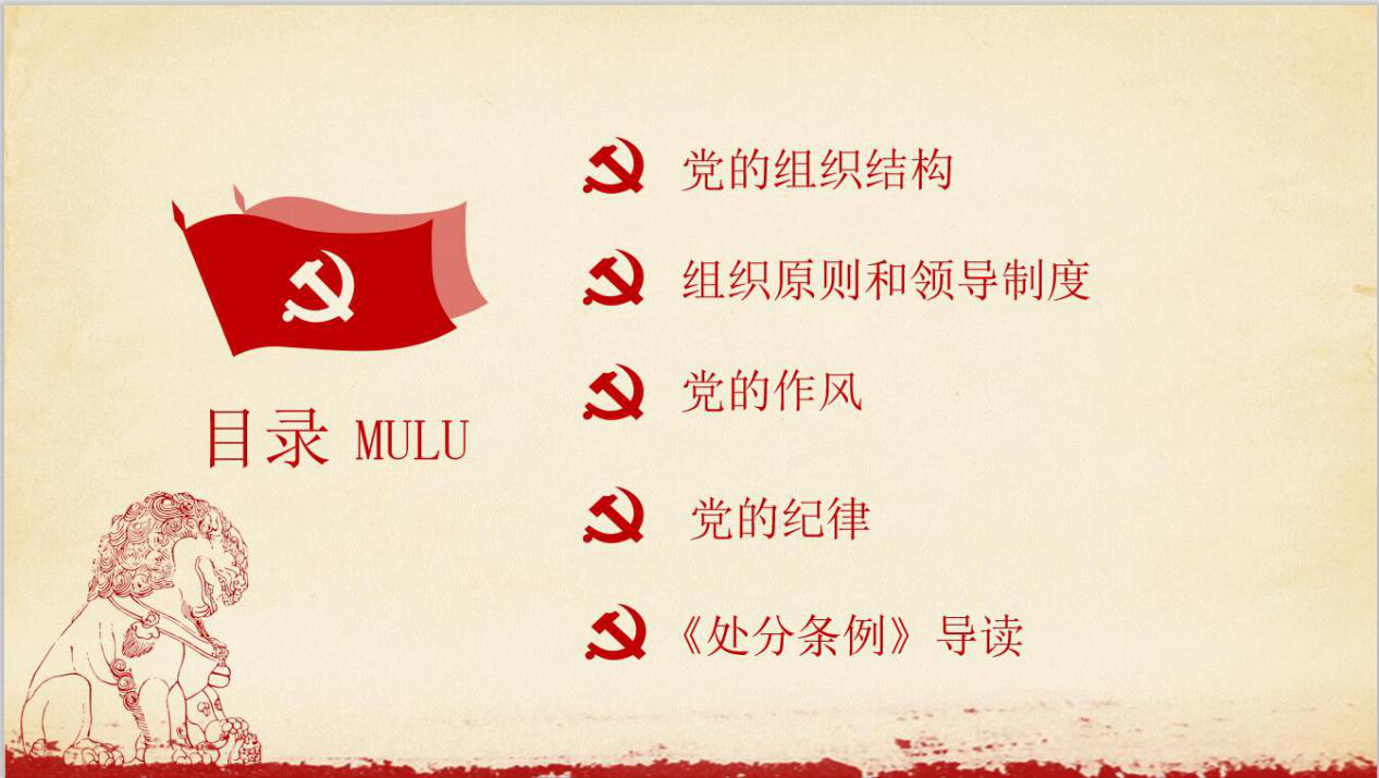 骆嘉伟老师将本节课划分为5个部分,分别是党的组织结构、组织原则和领导制度、党的作风、党的纪律、《处分条例》导读。