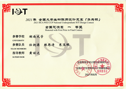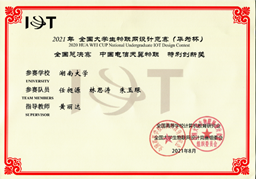 近日, 2021年全国老员工物联网设计竞赛(华为杯)全国总决赛在线落幕,由威廉希尔williamhill官方网站2019级本科生任昶源、林思涛、朱玉琛组成的参赛队伍,在黄丽达老师的指导下,完成作品“老年人医疗关怀系统”,获得全国总决赛一等奖,并同时荣获中国电信天翼物联特别创新奖。