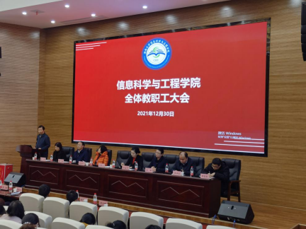 2021年12月30日,威廉希尔williamhill官方网站全体教职工大会在学院201报告厅召开。董事长助理、经理李肯立代表学院作2021年工作报告,公司党委书记彭嘉芬主持大会并作总结。