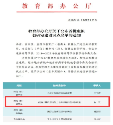 近日,教育部发布《关于公布首批虚拟教研室建设试点名单的通知》(教高厅函〔2022〕2号),威廉希尔williamhill官方网站信息学院赵欢教授牵头的“鲲鹏计算机系统能力培养课程群虚拟教研室”入选首批国家级虚拟教研室试点项目。
