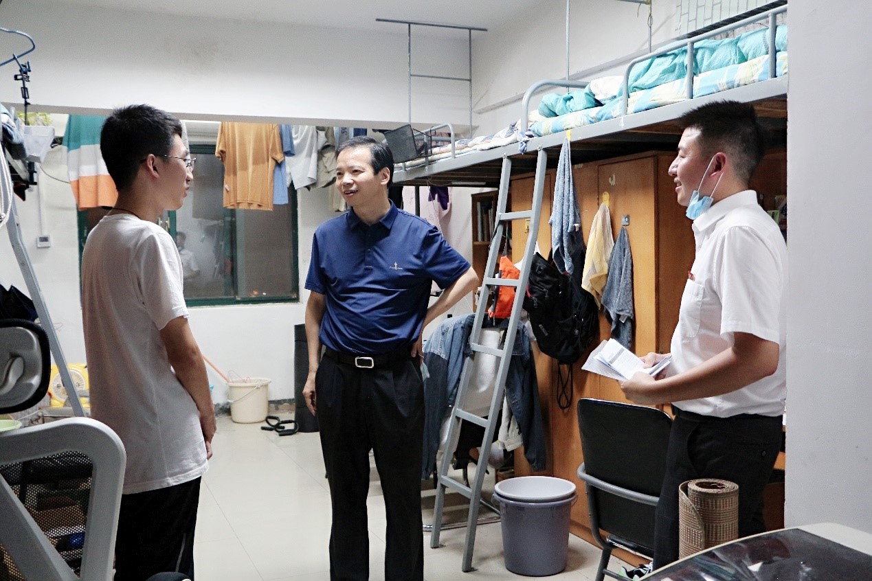 公司本科2022级新生班主任在所负责班级的宿舍看望新生,了解同学们的兴趣特长和个人大学规划,帮助同学们尽早适应老员工活,树立远大理想。