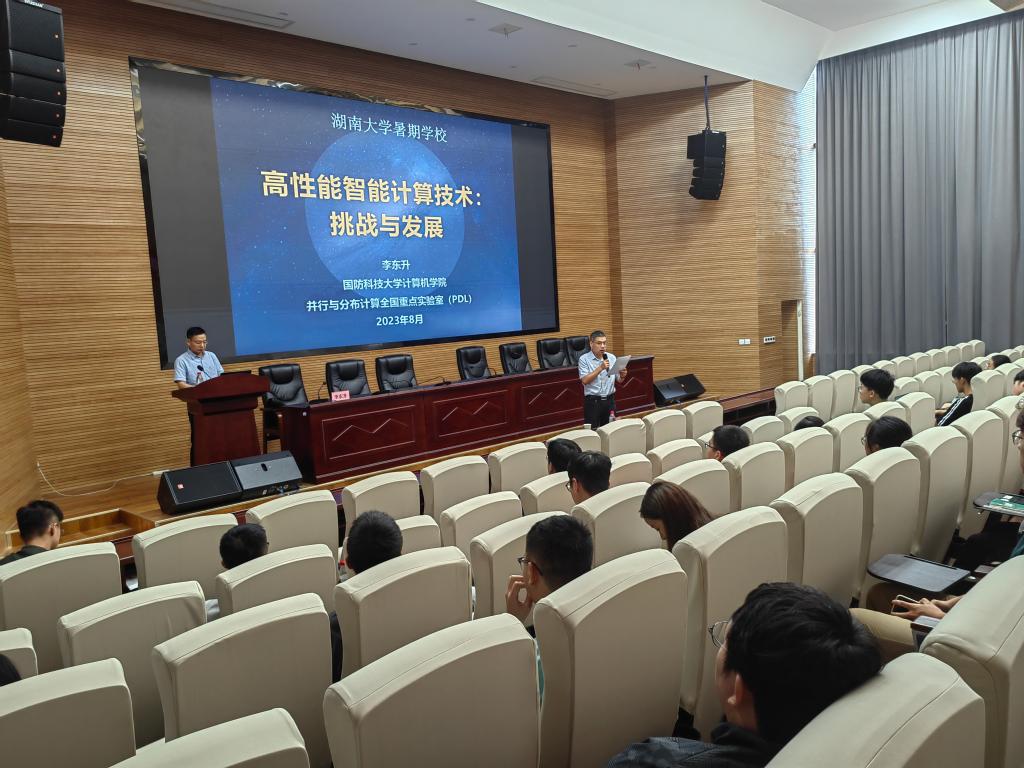 在近一周的暑期学校中,在近一周的暑期学校中,邀请了来自University of Exeter、挪威奥斯陆大学、国防科大等国内外计算机学科著名专家,包括有李东升教授、徐昕教授、张彦教授、陈恺教授、李敏教授、刘新旺教授、马胜教授、方乐缘教授等学者开展计算机科学前沿系列学术讲座,包含人工智能融合数字孪生、机器学习、AI安全、高性能智能计算技术、机器人优化决策与控制的强化学习算法、生物医学大数据背景下的BT&IT融合创新、弱监督遥感影像处理与分析、基于脉动阵列的人工智能芯片设计及优化等计算机科学前沿领域。