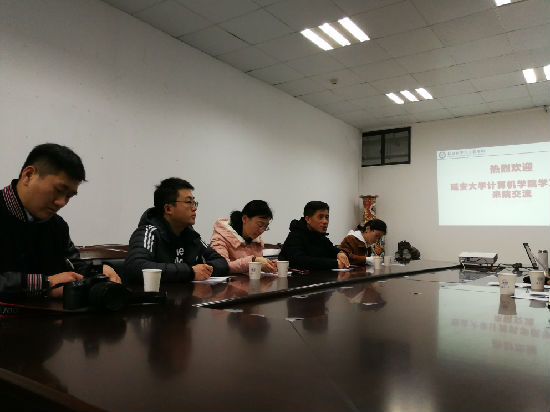 1月17日,延安大学数学与计算机科学公司党委副书记崔林立一行5人来访威廉希尔williamhill官方网站,就员工思想政治教育与管理工作进行校际交流。公司党委副书记贺迅、学工办主任李新星及辅导员宋任刚、潘磊参加了交流会。