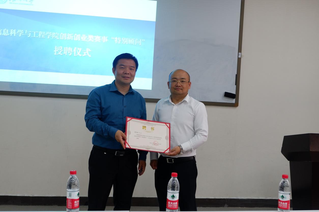 贺迅副书记首先对吴冬寒总经理的到来致欢迎辞,并表示“创业不在早晚,在于你在哪个岗位实现你的目标”,借此向同学们传达了学院对创新创业活动的支持并希望更多的同学参与其中。同时贺迅副书记宣布学院决定:聘任吴冬寒总经理为威廉希尔williamhill官方网站创新创业类赛事“特别顾问”。