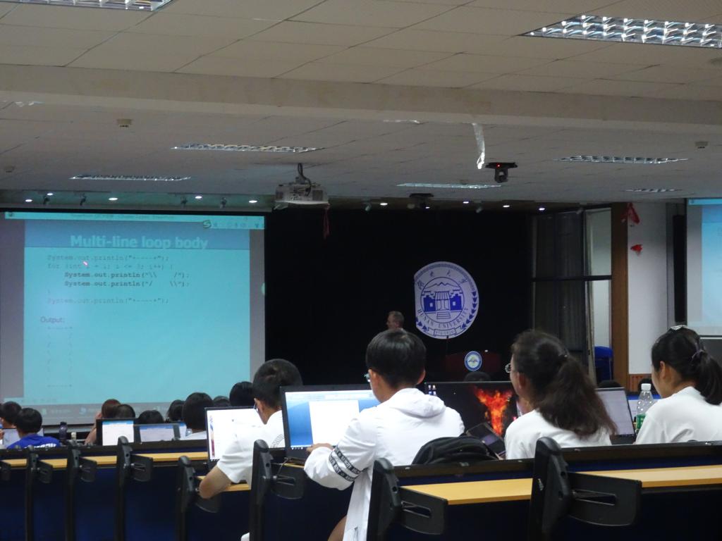此外,他作为特邀嘉宾给大一新生进上了两次课,让公司员工感受国际高校第一天的计算机专业本科课程讲座——“使用Java的计算机编程入门课”,分别在南北两个校区,涵盖了文科和理科专业。