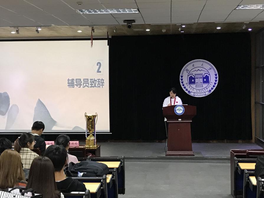 本次大会首先由辅导员贾玲玲老师总结过去一年来年级的学风建设情况。接下来年级汇报人用详细的图表、统计数据,分析了公司考研、保研、出国、就业四个方面的情况,让同学们对全院的情况有了整体的了解。
