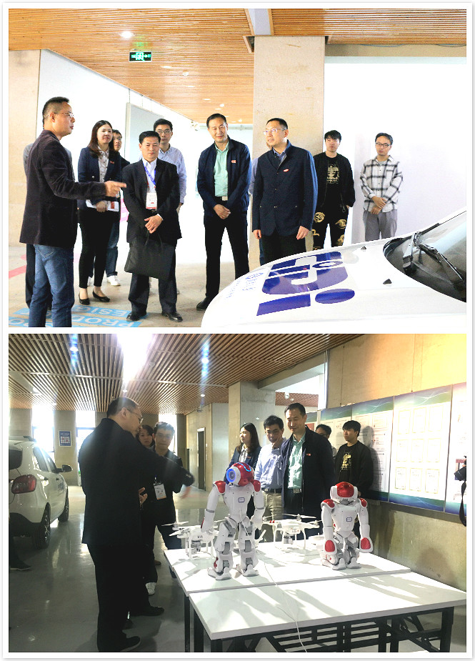 专家在学院领导陪同下还参观了学院文化展厅、员工毕业设计作品墙,参观了智能汽车、无人机、机器人等实践创新平台,向专家展示了各类新技术在实践平台上的应用与教学方案,以“人脸检测”这一技术为例,演示了“人脸检测”这一技术在各个平台中的应用——在微信与移动端APP上,通过实现“人脸检测”,实现了智能考勤与签到;NAO机器人平台实现的“人脸检测”功能能够让机器人增加“智能服务”功能;而无人机平台上添加有关“人脸检测”的代码,能够在群体性事件时快速发现重点关注人员,提高警方处置群体性事件的效率,充分体现学院注重 “做中学”来提高员工实践创新能力。