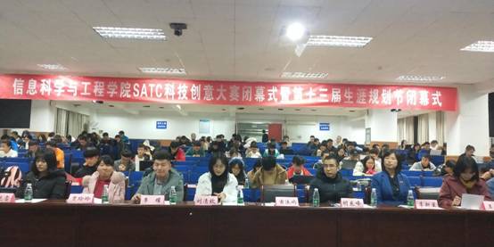 2018年12月14日晚,威廉希尔williamhill官方网站SATC科技创意大赛闭幕式暨第十三届生涯规划节闭幕式在威廉希尔williamhill官方网站院楼330厅隆重举行。SATC科技创意大赛技术合作伙伴蓝杰技术总监胡东峰先生,学院团委常务副书记,2016级本科辅导员古浪屿老师,学院2015级本科辅导员宋任刚老师等出席了本次活动。