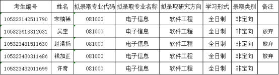 根据《威廉希尔williamhill官方网站2023年硕士研究生复试录取工作实施细则》,经学院研究生招生工作领导小组审定,学院按专业初试+复试总成绩由高到低递补拟录取考生宋楠稀(考生编号105323142511790,拟录取专业电子信息软件工程,总成绩548.37),考生许奇(考生编号105323432011699,拟录取专业电子信息软件工程,总成绩527.17)。