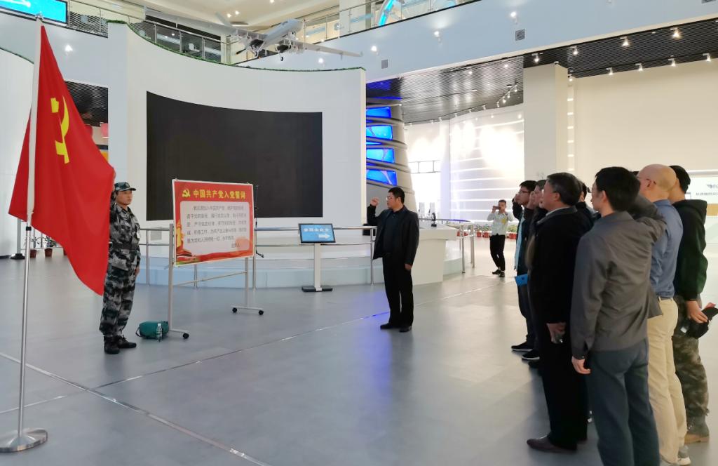 党员们一行首先来到航空馆主馆一层的军用航空展区,讲解员详细介绍了我国空军的发展历史,以及中国航空工业军用飞机的辉煌成果。在航空馆中庭,在支部书记欧阳柳波同志的带领下,全体党员在鲜红的党旗下重温入党誓词,铭记“不忘初心,牢记使命”的入党初衷。