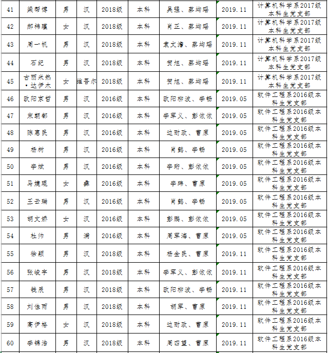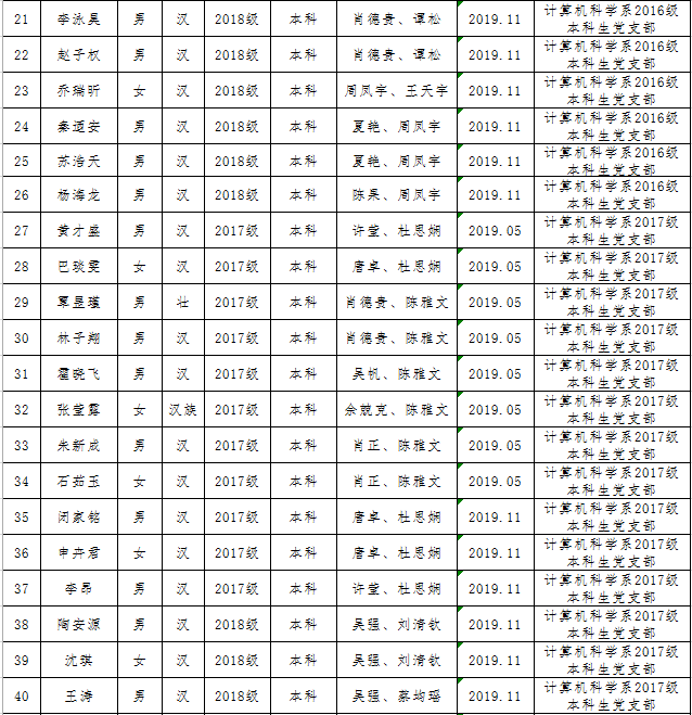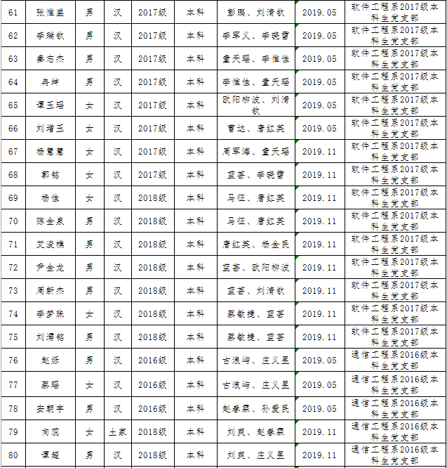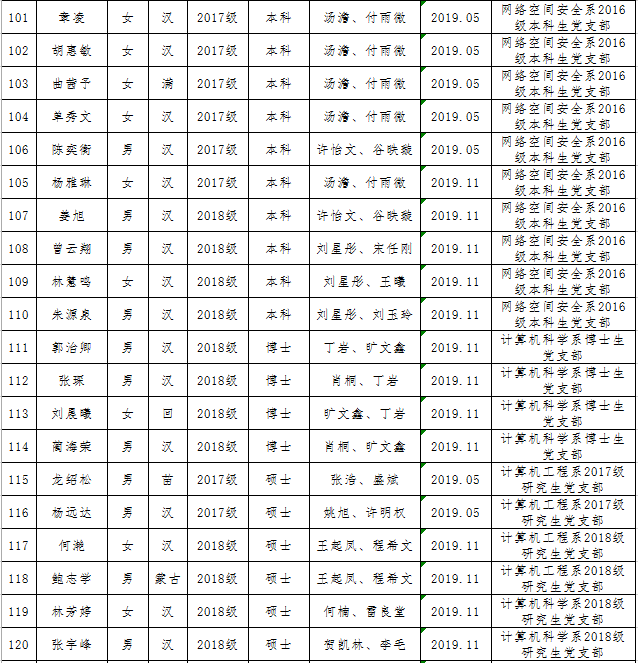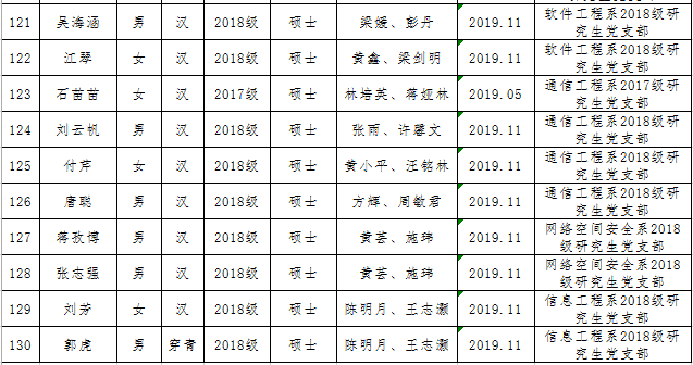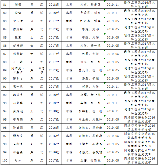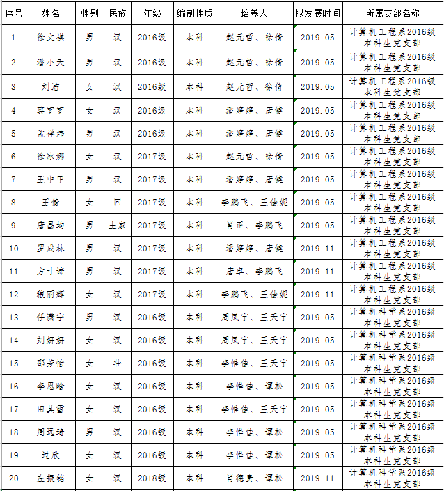 公司党委2019年初划拨给公司的2019年发展党员计划控制数,公司2019年可发展员工党员130人。经公司党委充分讨论,将各年级、各专业计划控制数下拨至各党支部,由党支部充分酝酿、讨论和支部会议通过,确定发展对象人选。经党委会讨论,确定130名同志为2019年发展对象,纳入年度党员发展计划,现具体名单公示如下: