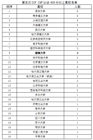 The fifth CCF CSP certification test schools with most people graded 400+ (ranked by the number of people)