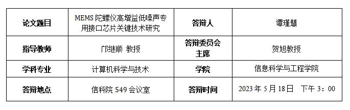 Lin Xiao, Jinhui Tan, Shaoqing Li, Jihua Chen. Design of High Precision Band-Pass Sigma-Delta ADC in MEMS Gyroscope, 23rd Annual Conference on Computer Engineering and Technology, NCCET 2019, Enshi, China. (EI, 第二作者, 已发表)