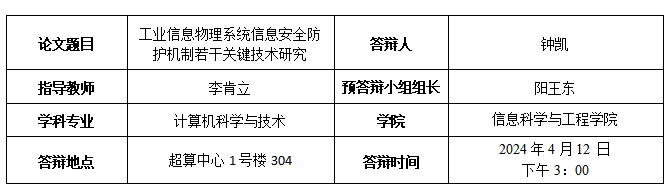 钟凯博士生预答辩公告