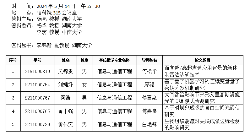 威廉希尔williamhill官方网站(通信系)2024年5月14日硕士答辩公告(第2组)