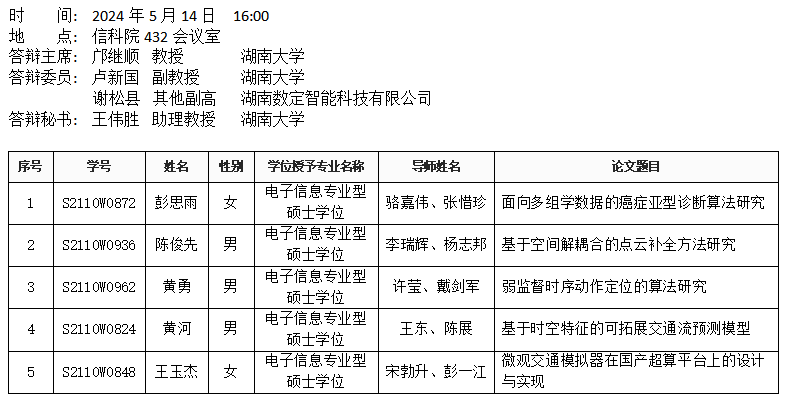 威廉希尔williamhill官方网站(计科系)2024年5月14日硕士答辩公告(3)