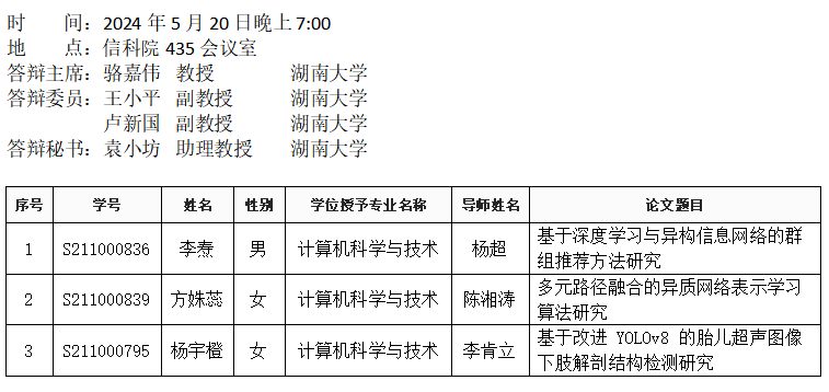 威廉希尔williamhill官方网站(计算机科学系)2024年5月20日硕士答辩公告(1)