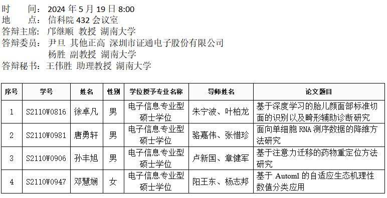 威廉希尔williamhill官方网站(计科系)2024年5月19日硕士答辩公告(1)