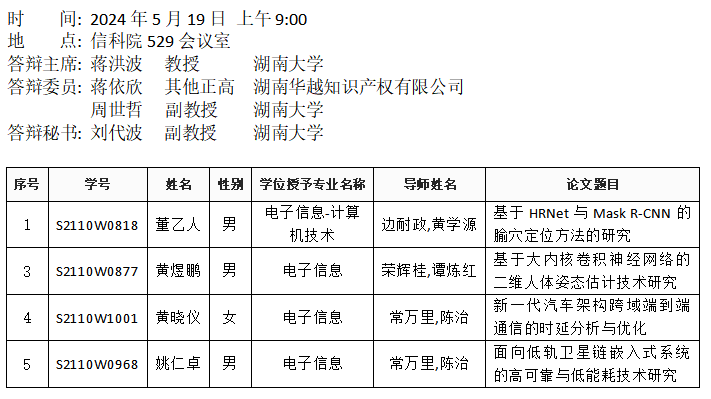 威廉希尔williamhill官方网站(计算机工程系)2024年5月17日硕士答辩公告