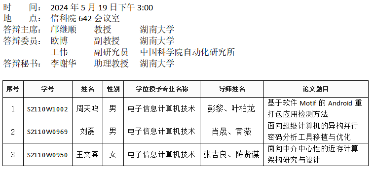 威廉希尔williamhill官方网站(安全系)2024年5月19日硕士答辩公告(2)