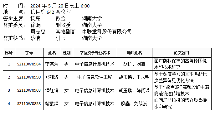 威廉希尔williamhill官方网站(安全系)2024年5月20日硕士答辩公告(2)