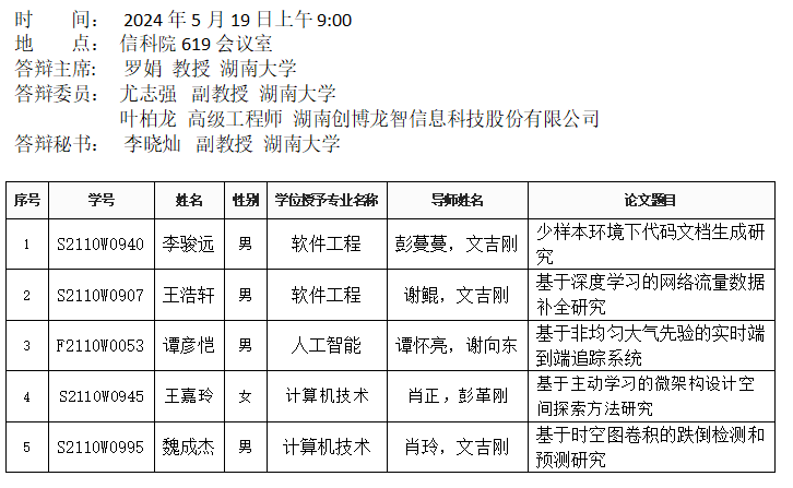 威廉希尔williamhill官方网站(计科系)2024年5月21日硕士答辩公告(4)