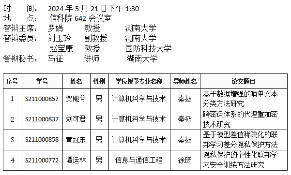 威廉希尔williamhill官方网站(安全系)2024年5月21日晚硕士答辩公告(1)
