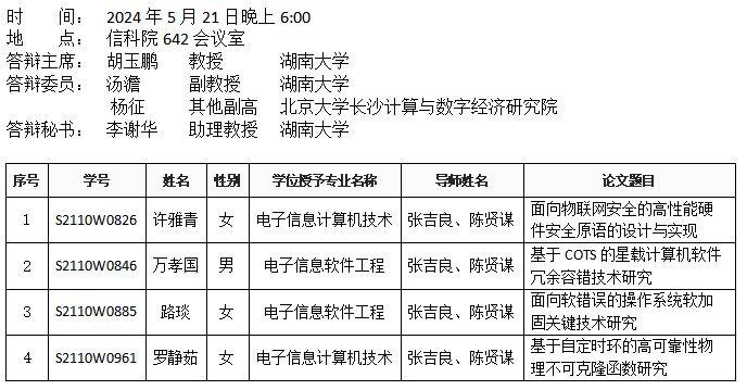 威廉希尔williamhill官方网站(安全系)2024年5月21日晚硕士答辩公告(2)