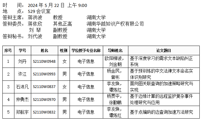 威廉希尔williamhill官方网站(计算机工程系)2024年5月22日硕士答辩公告