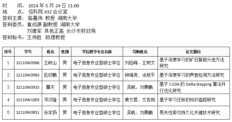 威廉希尔williamhill官方网站(计科系)2024年5月24日硕士答辩公告(1)