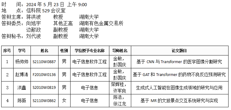 威廉希尔williamhill官方网站(软件工程系)2024年5月23日硕士答辩公告(2)