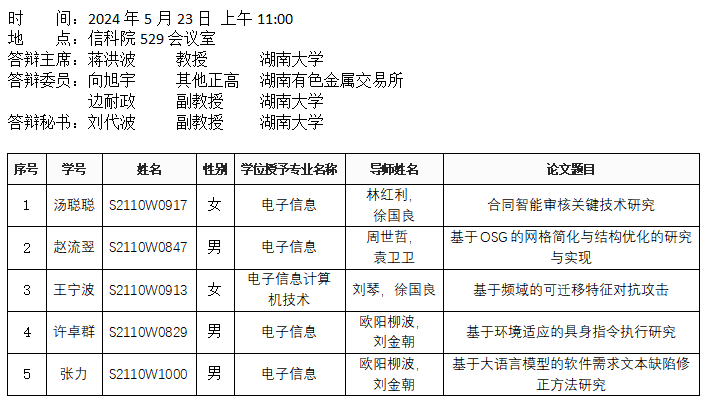 威廉希尔williamhill官方网站(软件工程系)2024年5月23日硕士答辩公告(3)