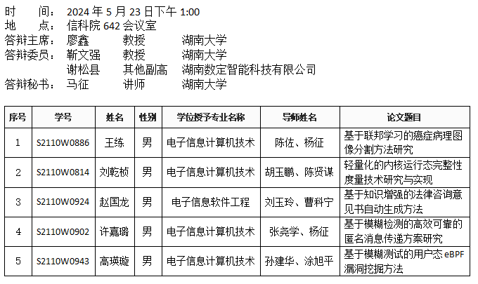 威廉希尔williamhill官方网站(软件工程系)2024年5月23日硕士答辩公告(6)