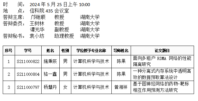威廉希尔williamhill官方网站(计算机科学系)2024年5月25日硕士答辩公告(1)