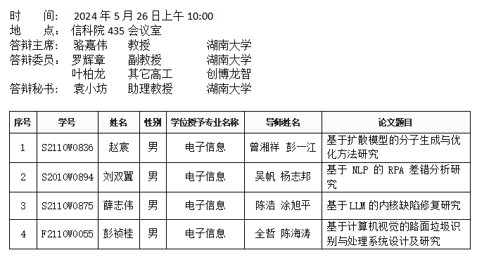 威廉希尔williamhill官方网站(计算机科学系)2024年5月26日硕士答辩公告(1)