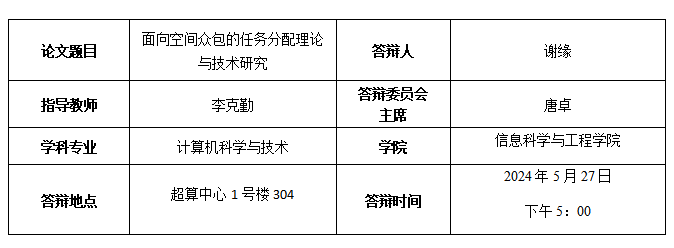 谢缘博士生答辩公告